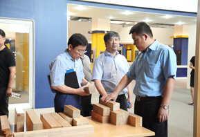 在中国国际门窗城总裁倪海琼的陪同下,调研组深入到被动式集成示范建筑、中国门窗博物馆、门窗城展馆及节能门窗工业园实地参观。调研中,忻国樑对被动式建筑的研发与应用、节能门窗产品的性能及建筑遮阳系统的技术进行了深入了解和详细询问。
